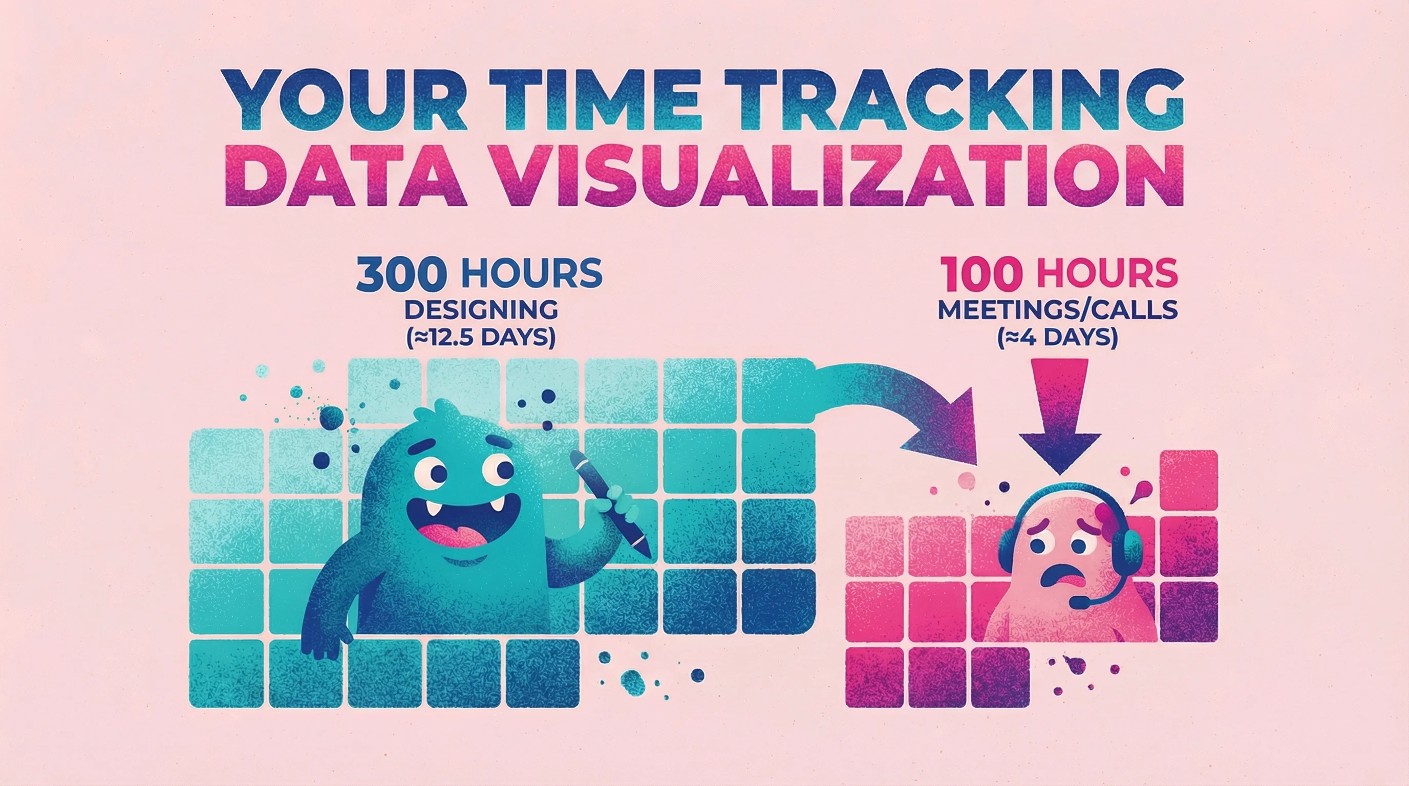 I track all of my client meetings—feedback calls, review sessions, everything—separately from actual design time. Over the last six months, I spent about 300 hours designing and 100 hours on admin tasks like meetings and review calls.