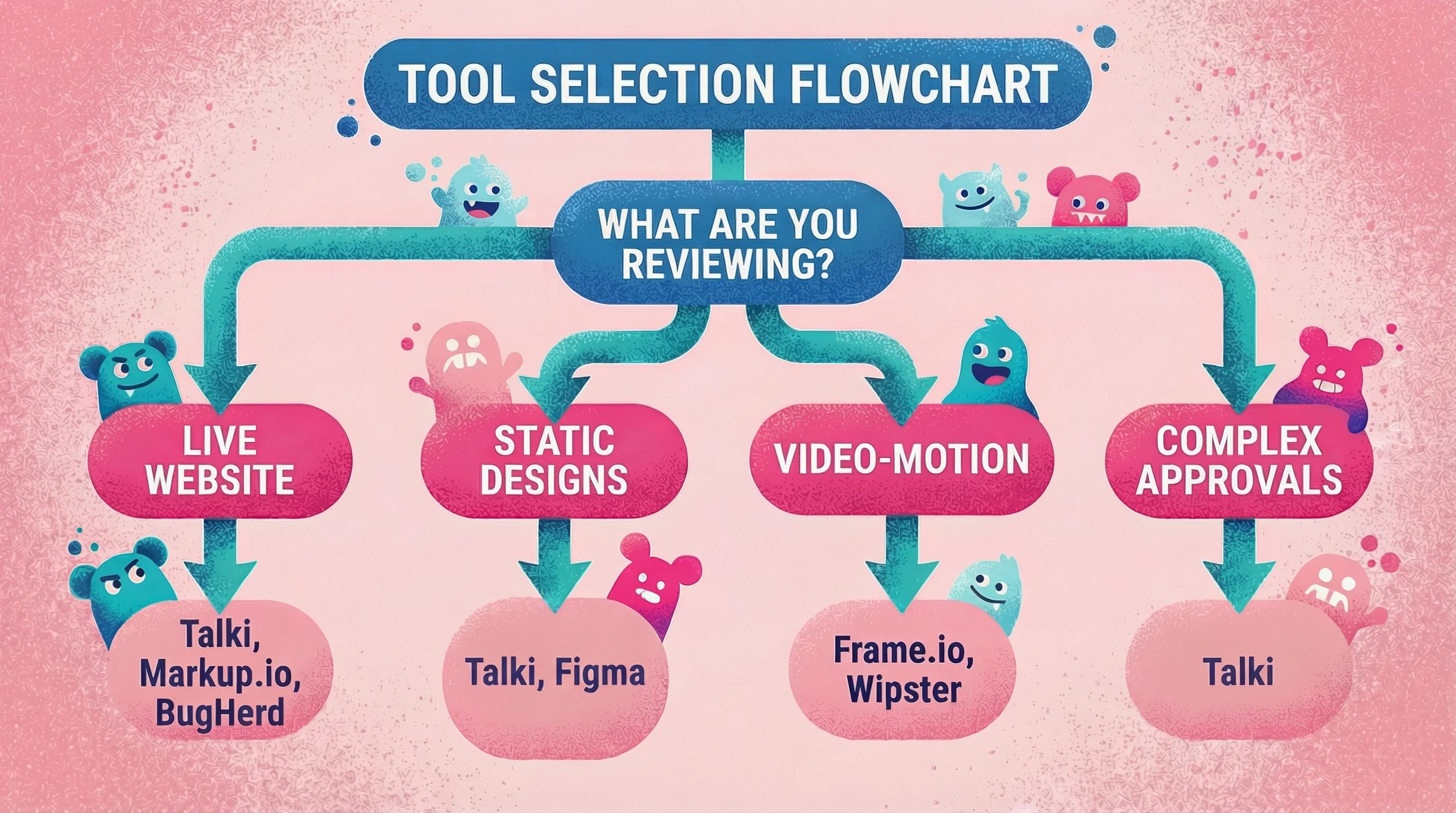 If written comments with visual context work for your projects, annotation tools like Markup.io or Pastel fit well. If you've found that clients struggle to articulate feedback in writing—the classic "make it pop" problem—video-based tools like Talki capture the nuance that text misses. We break down forms vs. video vs. async feedback methods in a separate guide.