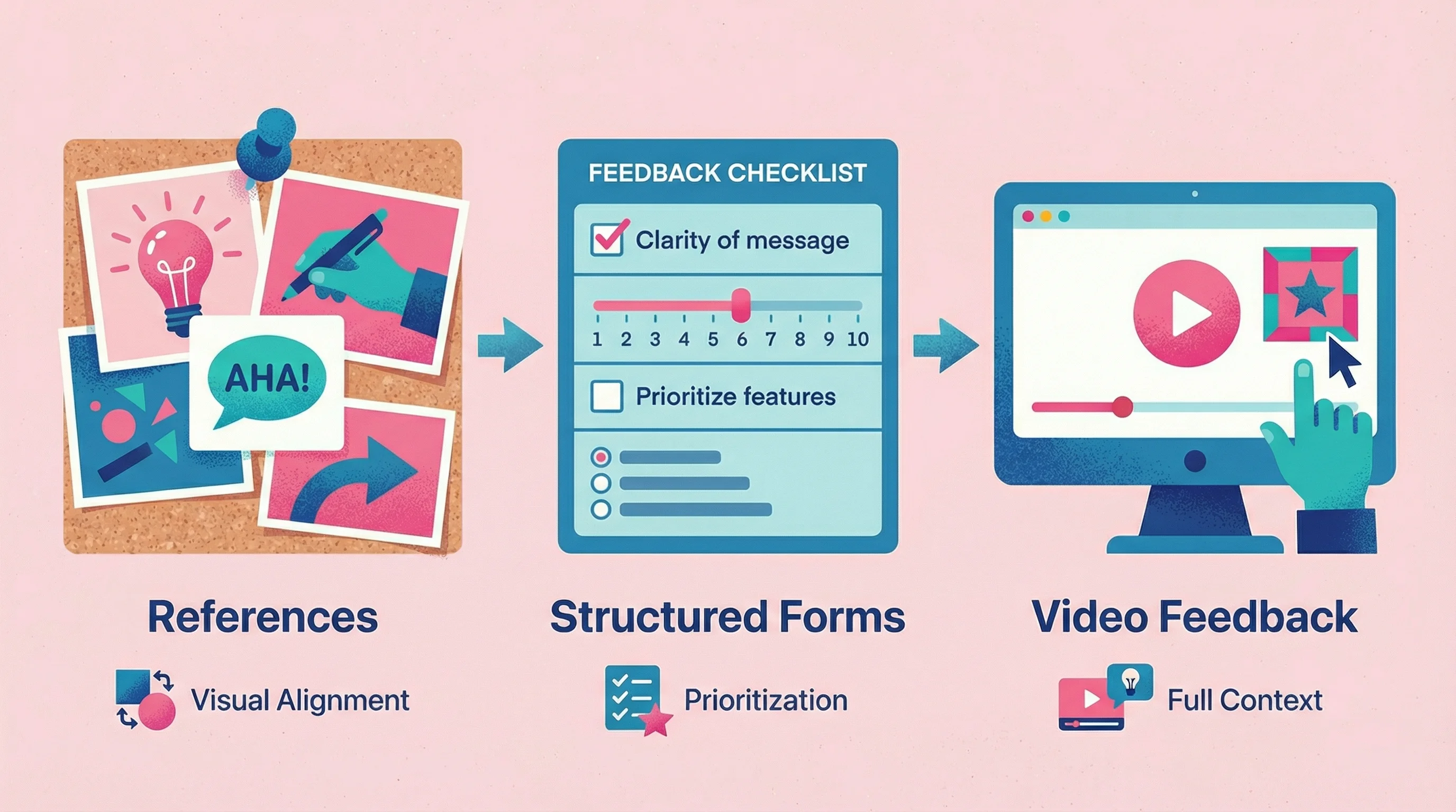 Make it easier to give. Video feedback often comes faster than written because clients don't have to craft careful prose—they just talk. Links that don't require downloads or accounts remove another barrier. Research shows that eliminating unnecessary steps can raise user completion rates by up to 30%.