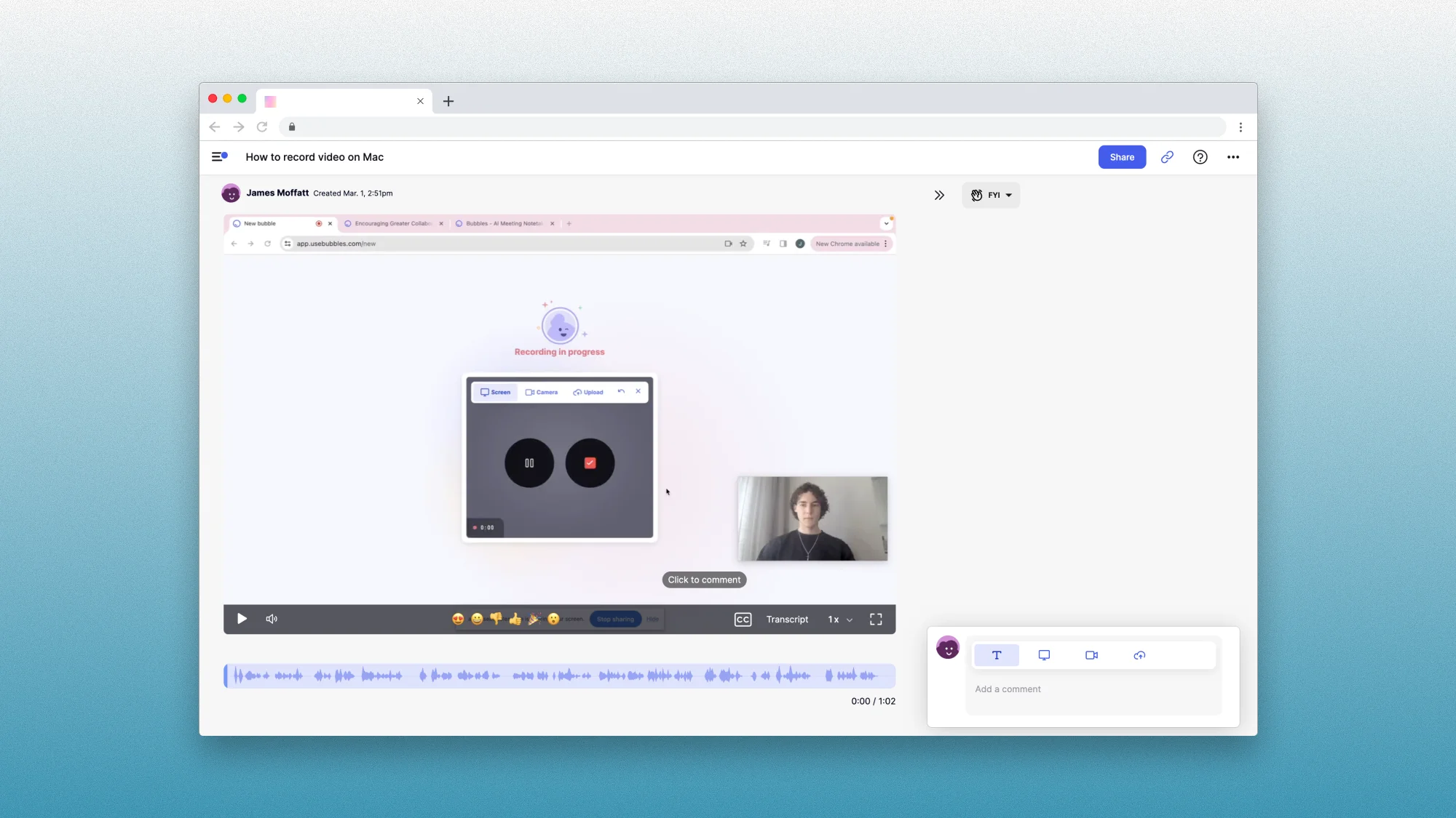 "I need my team to comment on specific moments" | Bubbles, Claap | Built for collaborative async review |
