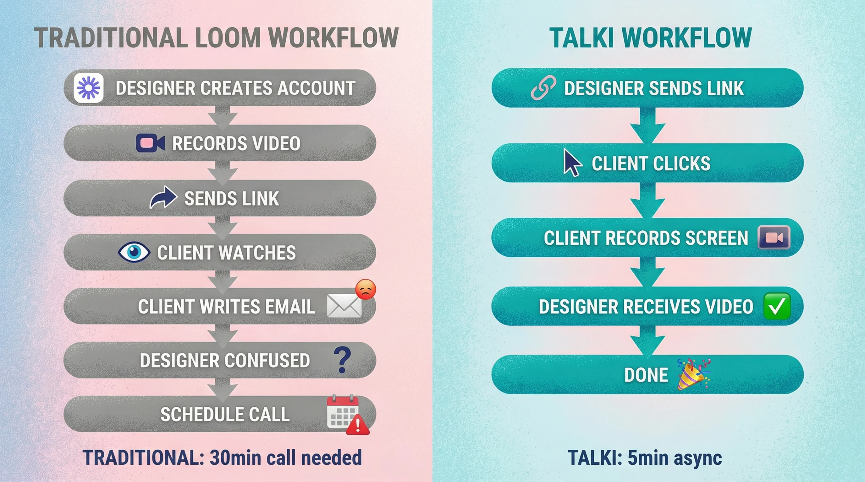 "I get walls of text from clients that probably take them longer to put together than it would to just record a 5-minute video explaining what they mean. But I can't ask them to buy Loom just to give me feedback."